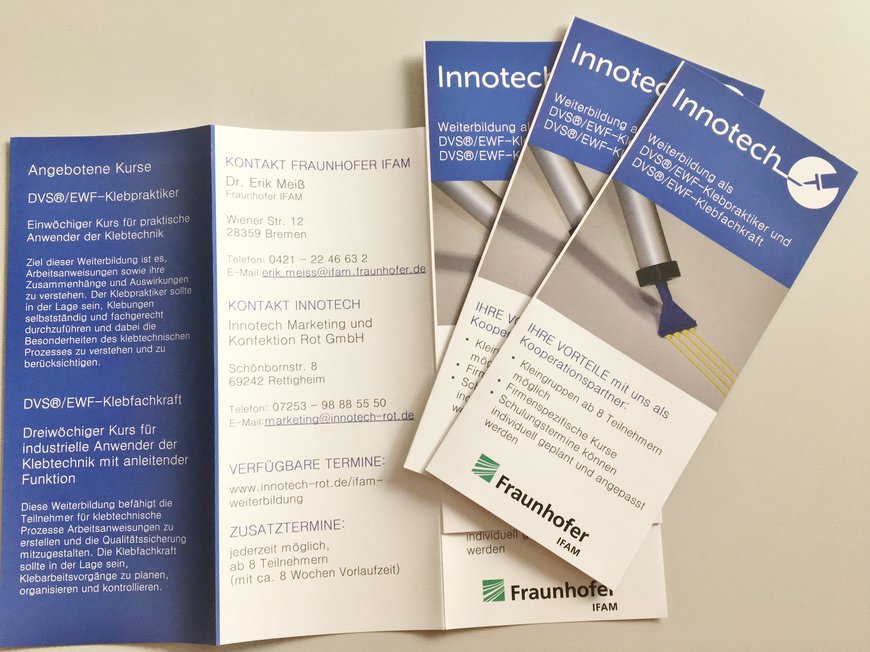 Die neuen Schulungsflyer über unsere Kooperation mit dem Fraunhofer IFAM sind eingetroffen! AB November werden in unseren neu gestalteten Schulungsräumlichkeiten in Rettigheim die ersten Kurse zum