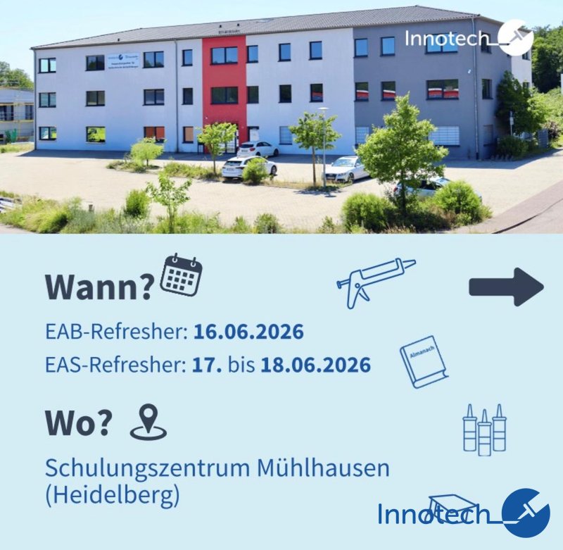 Die EAB- und EAS-Refresher-Kurse bieten wir Ihnen die Möglichkeit, Ihr klebtechnisches Fachwissen gezielt zu aktualisieren und Ihre Qualifikation gemäß aktuellen Richtlinien aufzufrischen. Die praxisnahen Schulungen richten sich an zertifizierte Fachkräfte, die ihr Wissen vertiefen und sich über neue Entwicklungen in der Klebtechnik informieren möchten.