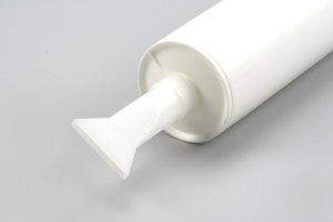 Individuell zuschneidbare Folienbeuteldüse mit Anstecher von Ritter. Durch den Anstecher ist ein vorheriges Öffnen des Folienbeutels nicht mehr nötig.