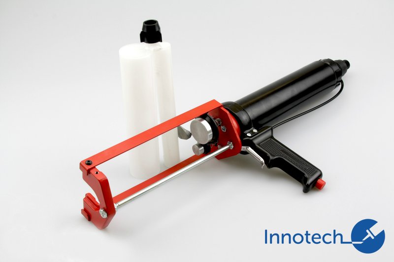 Pneumatische Doppelkartuschenpistole für LORD 400ml, 415ml und 490ml medmix Mixpac Doppelkartuschen. Mit dieser Doppelkartuschenpistole können die folgenden LORD Produkte verarbeitet werden: